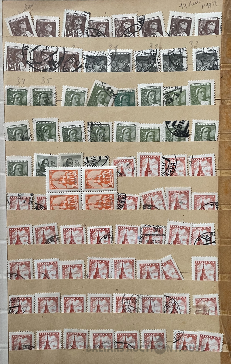 Pastmarkas PSRS, kvalitāte dažāda, dažas pielipušas pie pamatnes