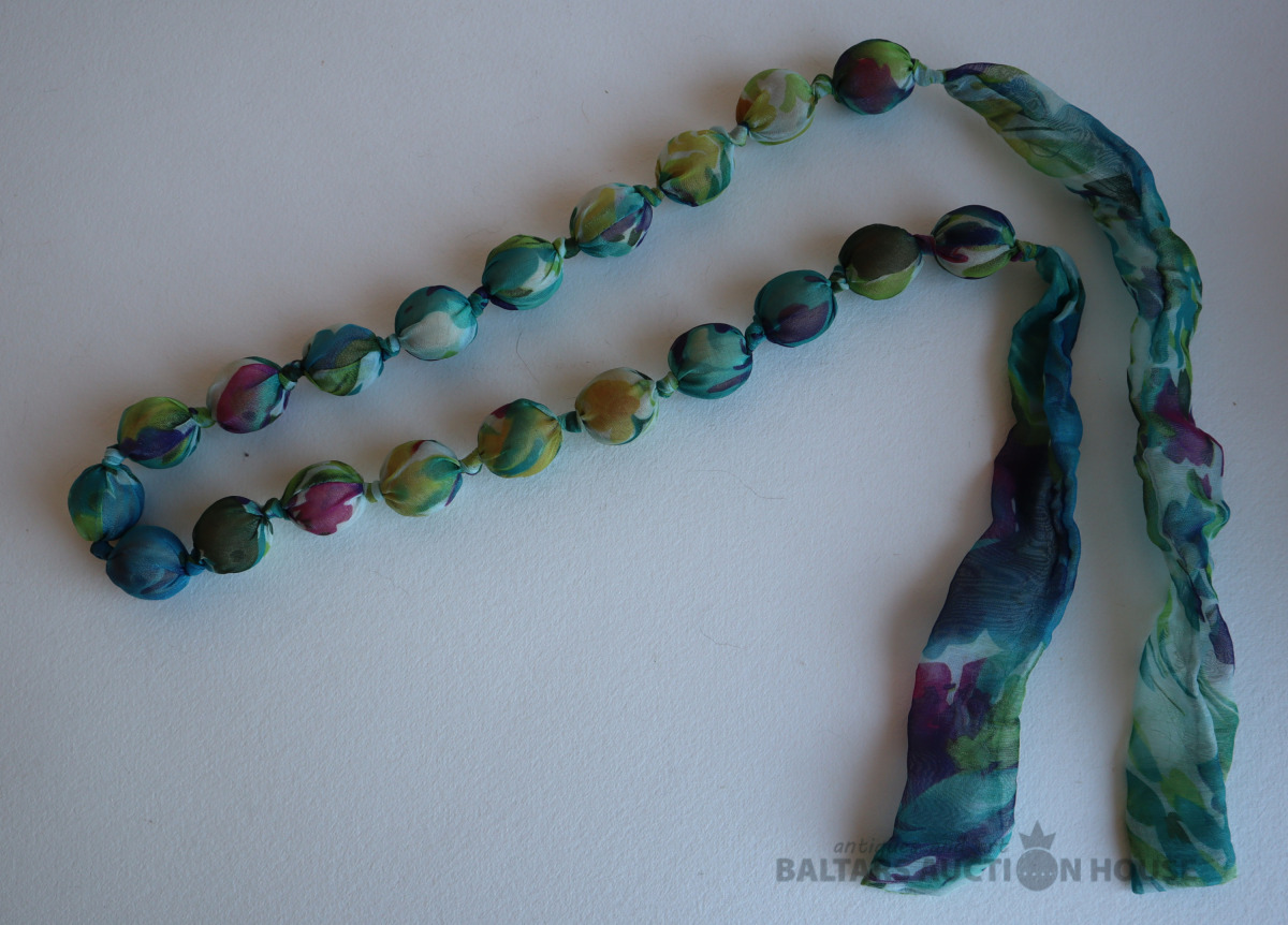 Bižutērija, ap kaklu liekama rota. Koks, audums, plastmasa.