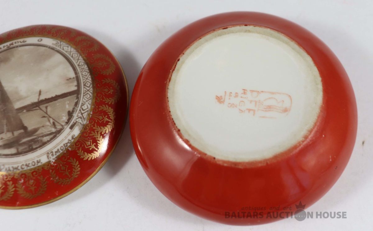Porcelāna trauciņš ar vāku. "Rīgas jūrmala". PFF., h=3,5 cm, d=8,5 cm