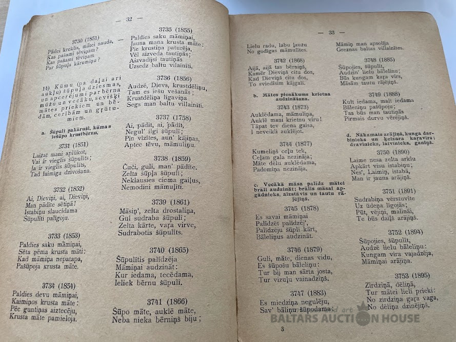 K.Barona Latvijas dainu izlase III grām. 1922.g. Izgl. ministrijas izdevums