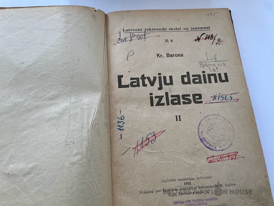 K.Barona Latvijas dainu izlase II grām. 1921.g. Izgl. ministrijas izdevums