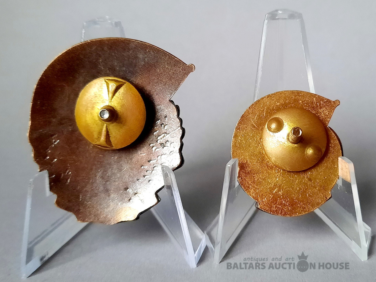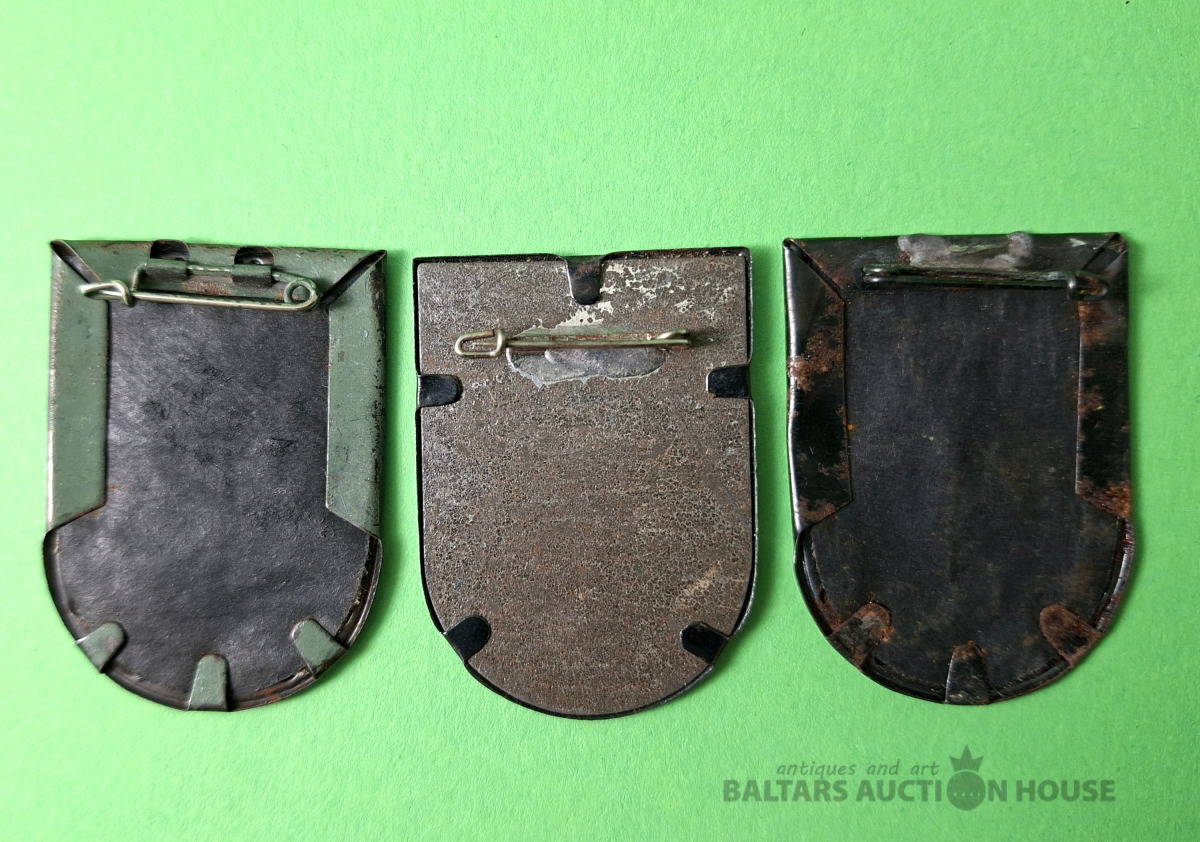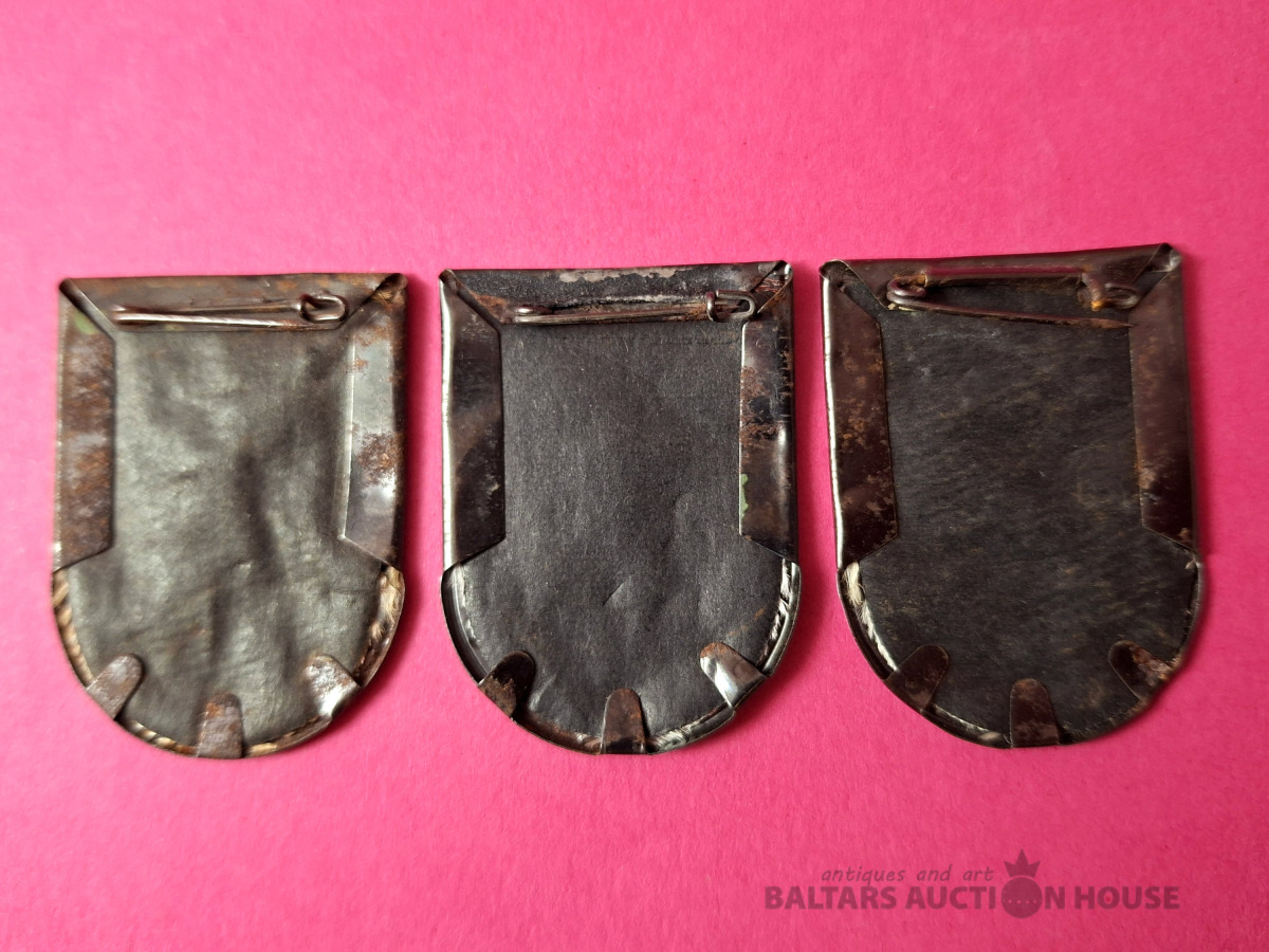 Nozīmju komplekts, Latviešu sarkano strēlnieku (LSS) 50 gadu jubileja, liels + mazs izmēri, Latvija, PSRS, 20.gs. 60ie gadi, 45 x 38 / 31 x 27.6 mm.