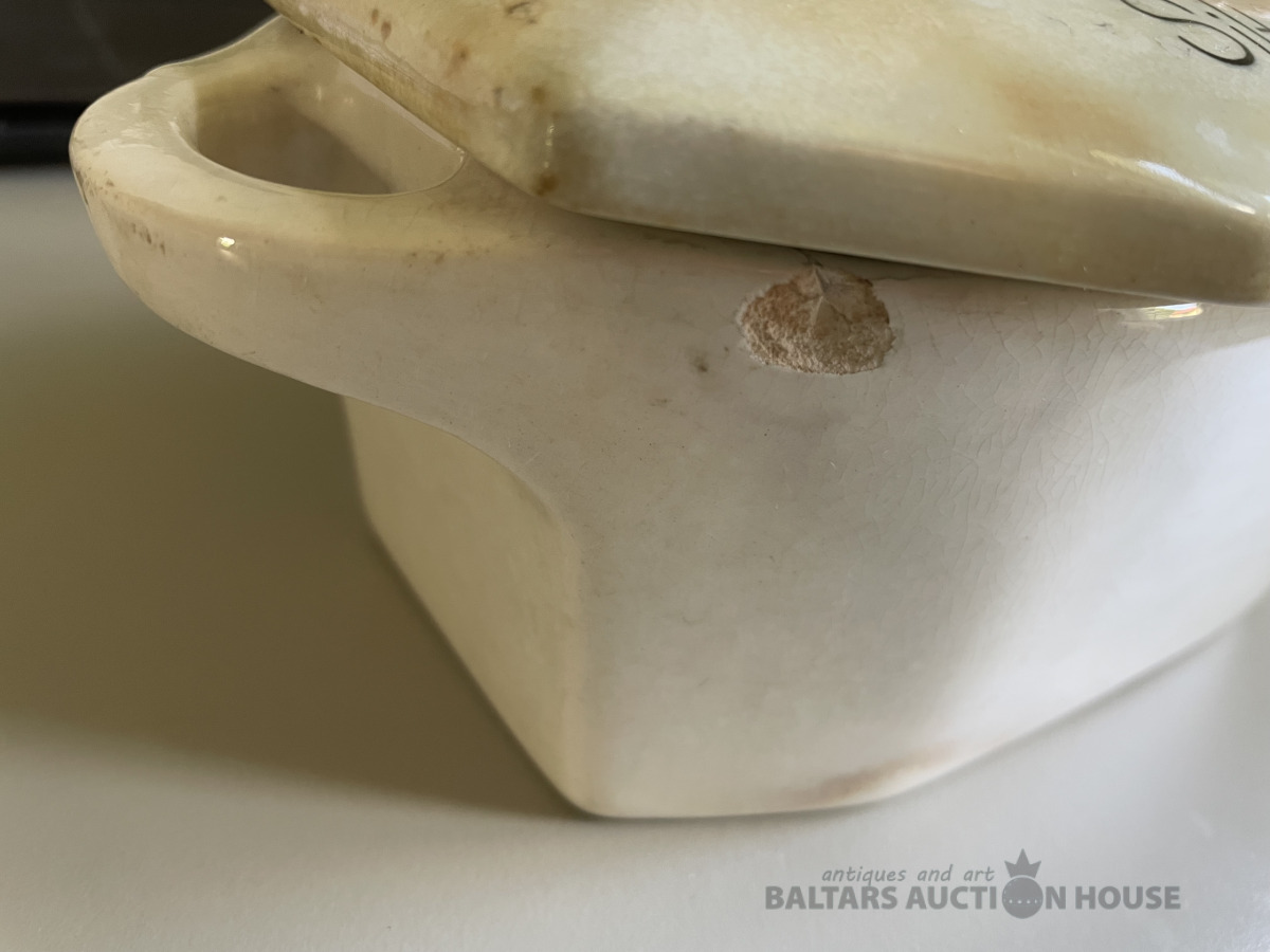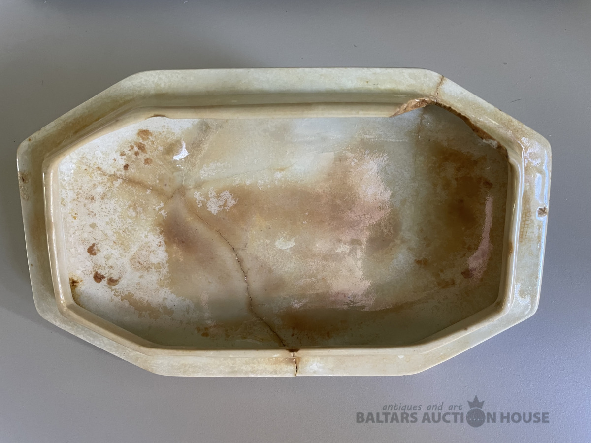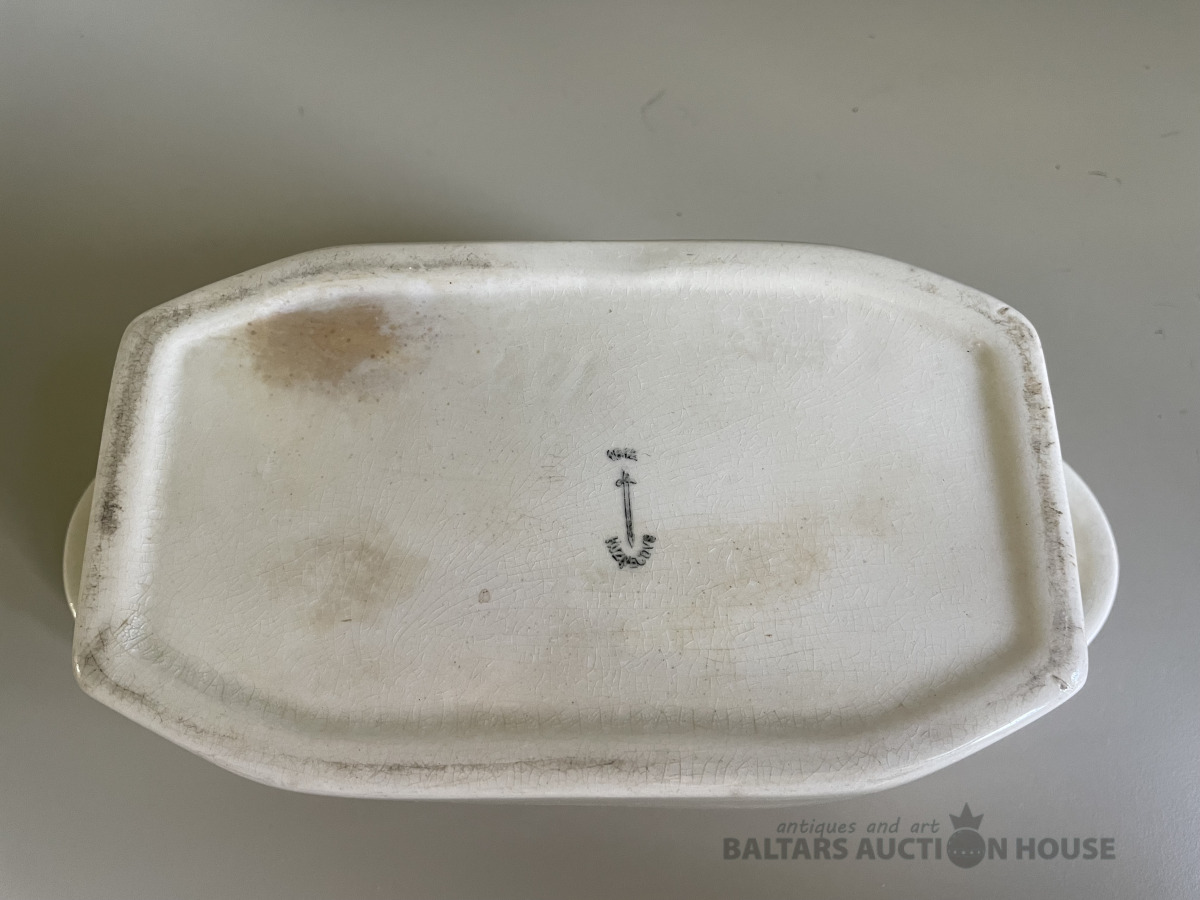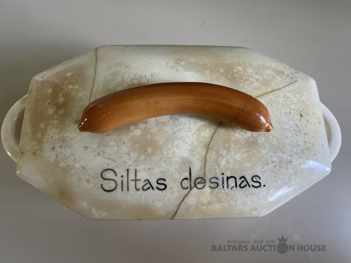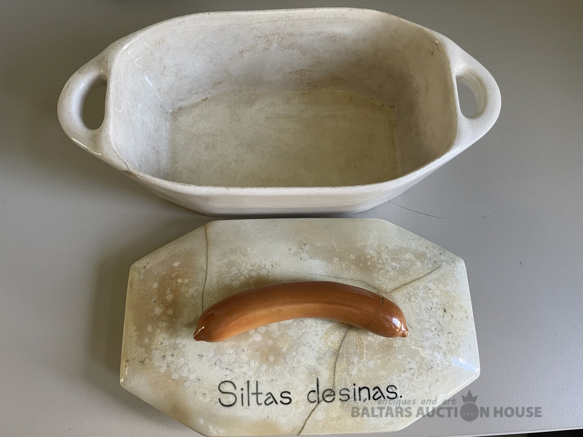 Kuzņecovs. Trauks - Karstas desiņas., Kuzņecova zīmogs. Atjaunots. Ir nošķēlumi, plaisas. Vēsturisks virtuves interjera priekšmets. Vairāk kā 100 gadi. Reti atrodams eksemplārs.