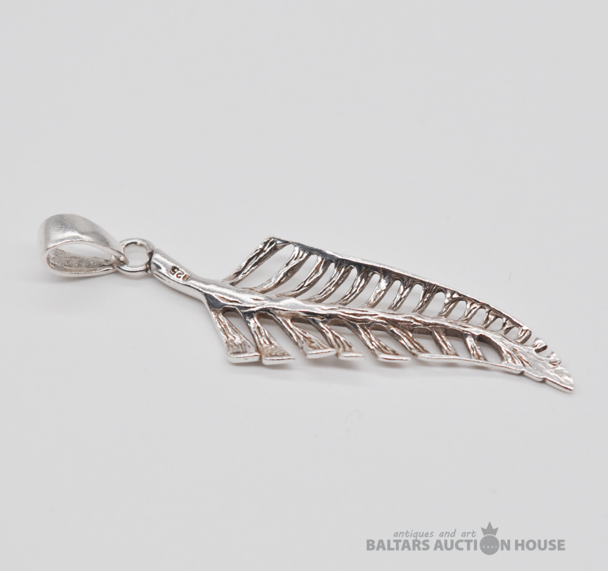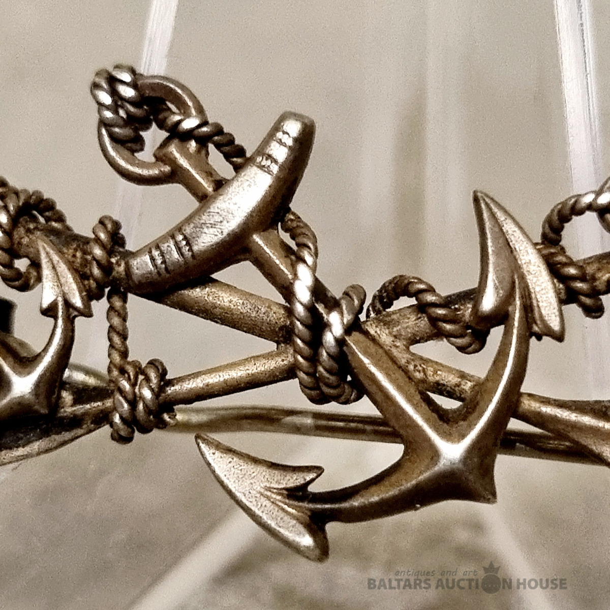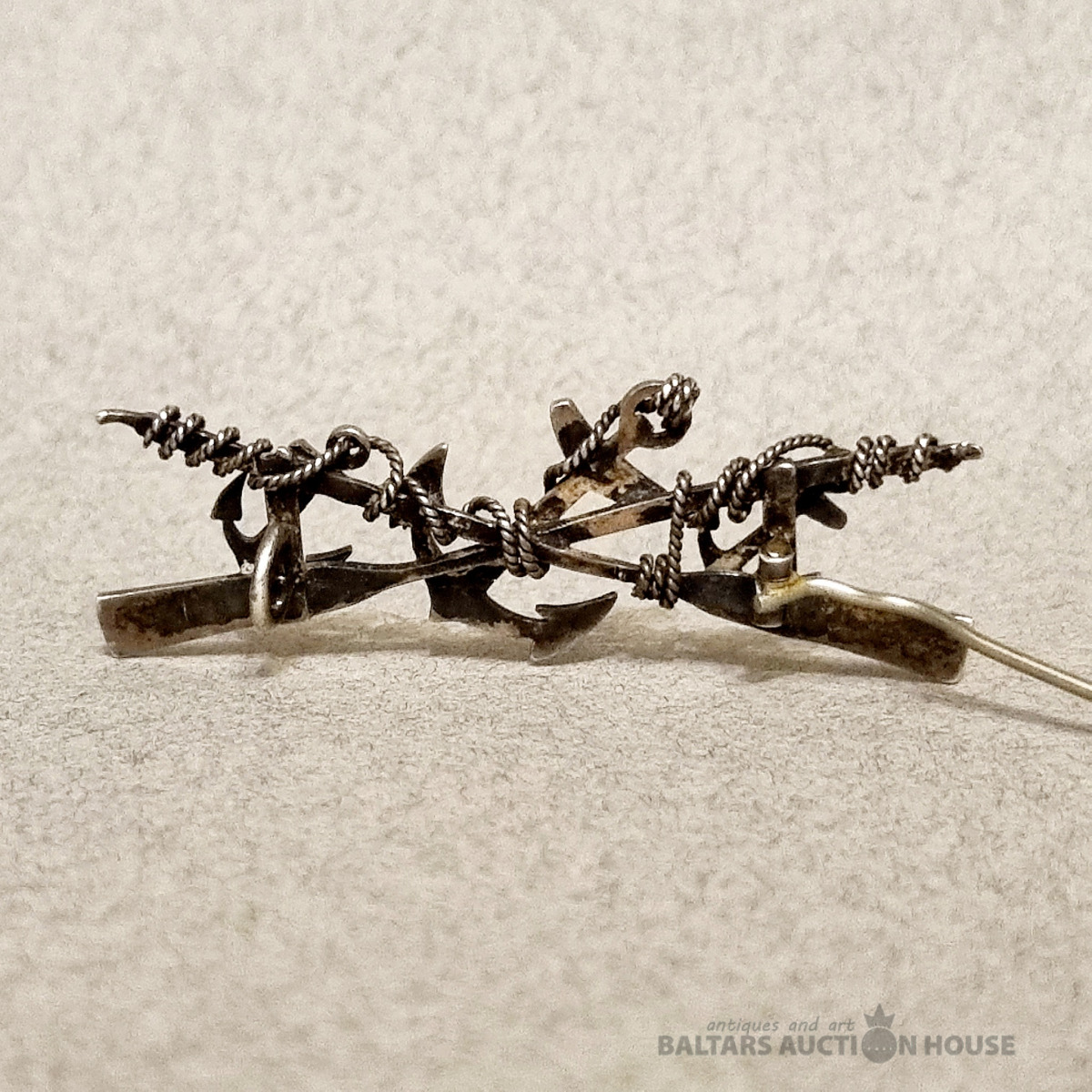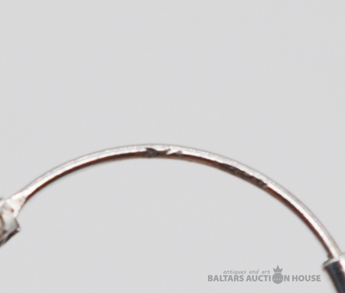 Art Deco stila piespraude ar baltiem akmeņiem. Sudrabs, 925. prove. Svars 5,55 grami. Augstums 7 cm.