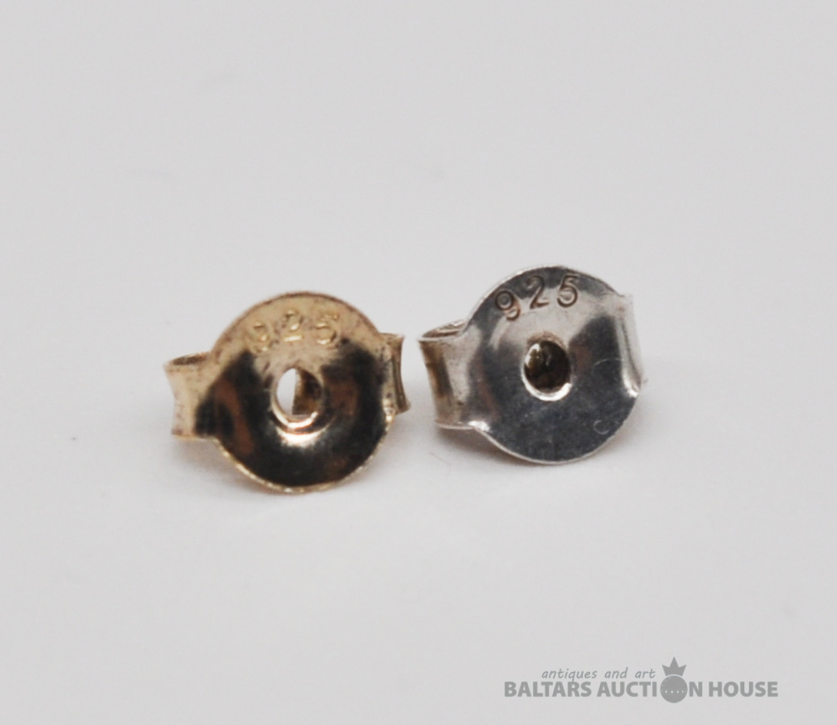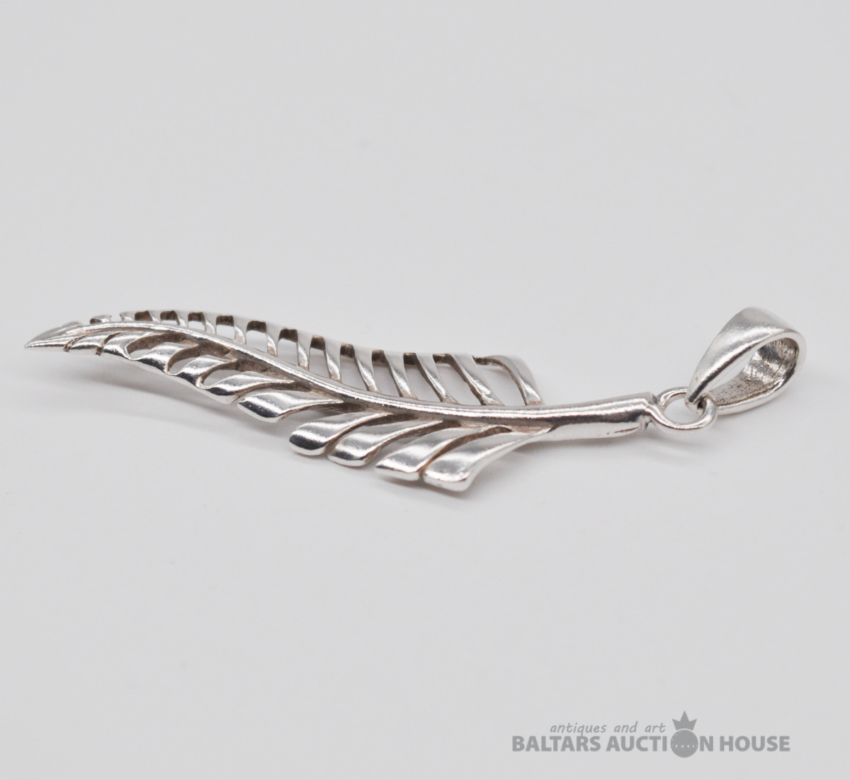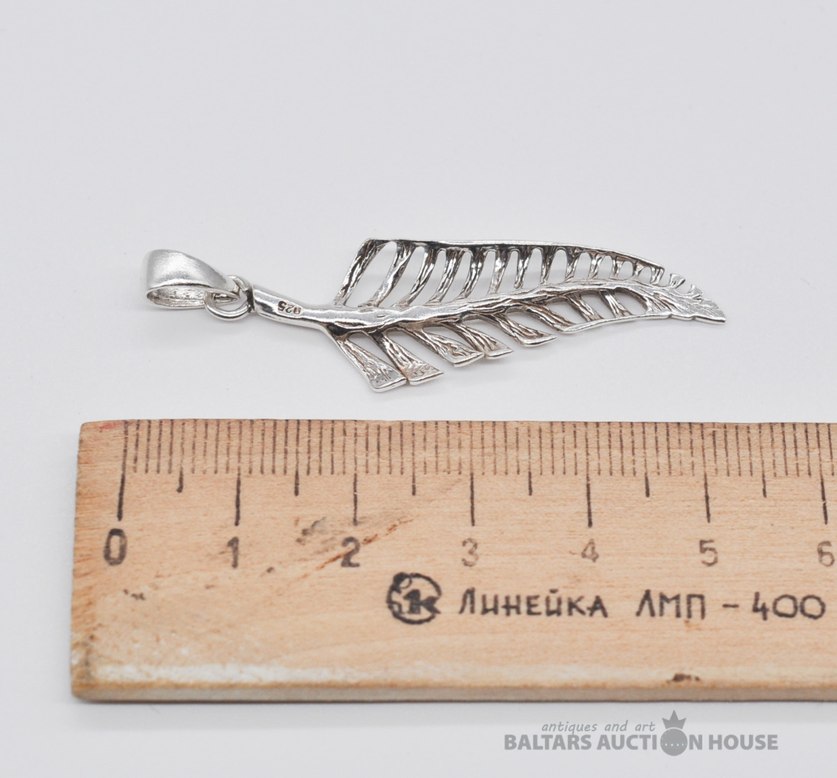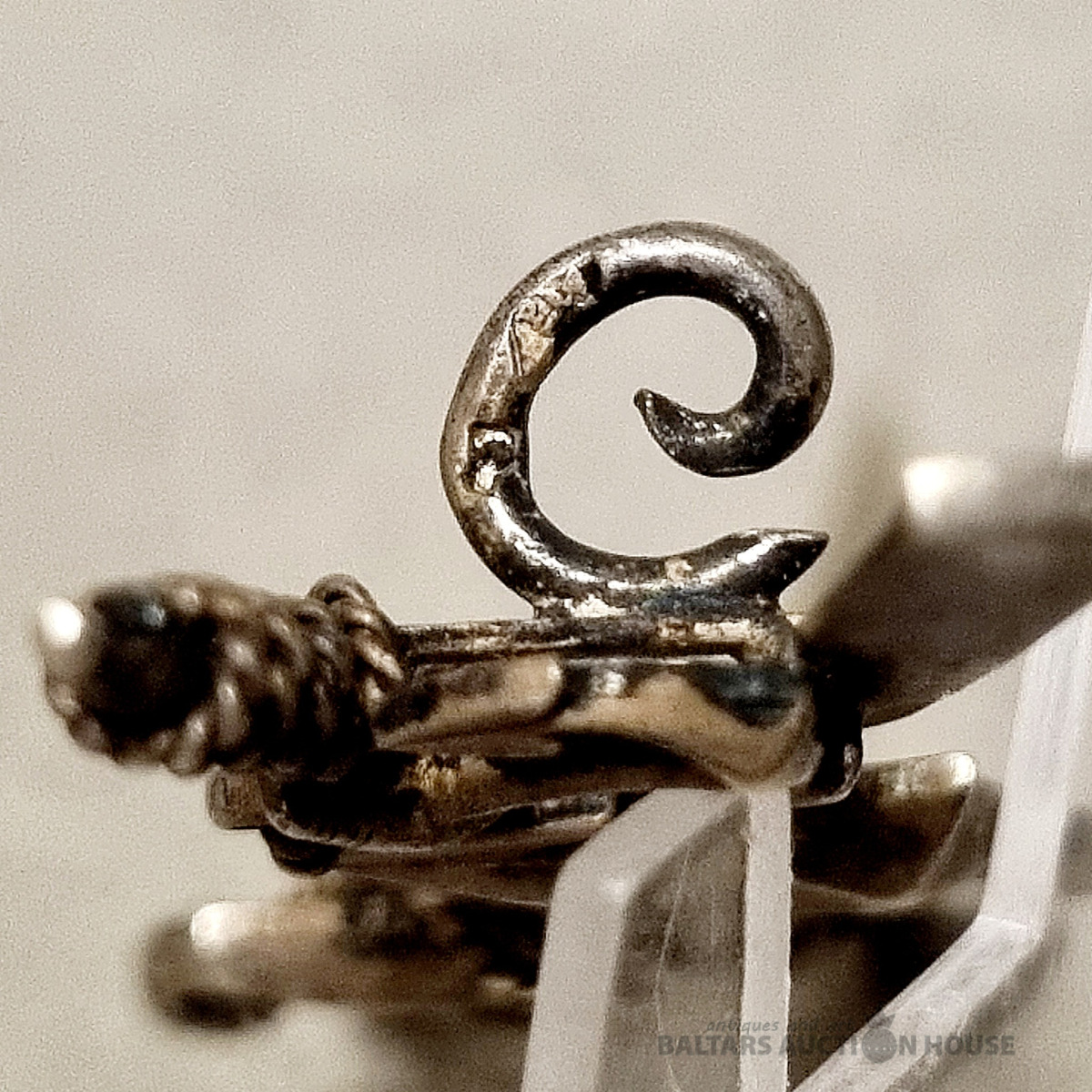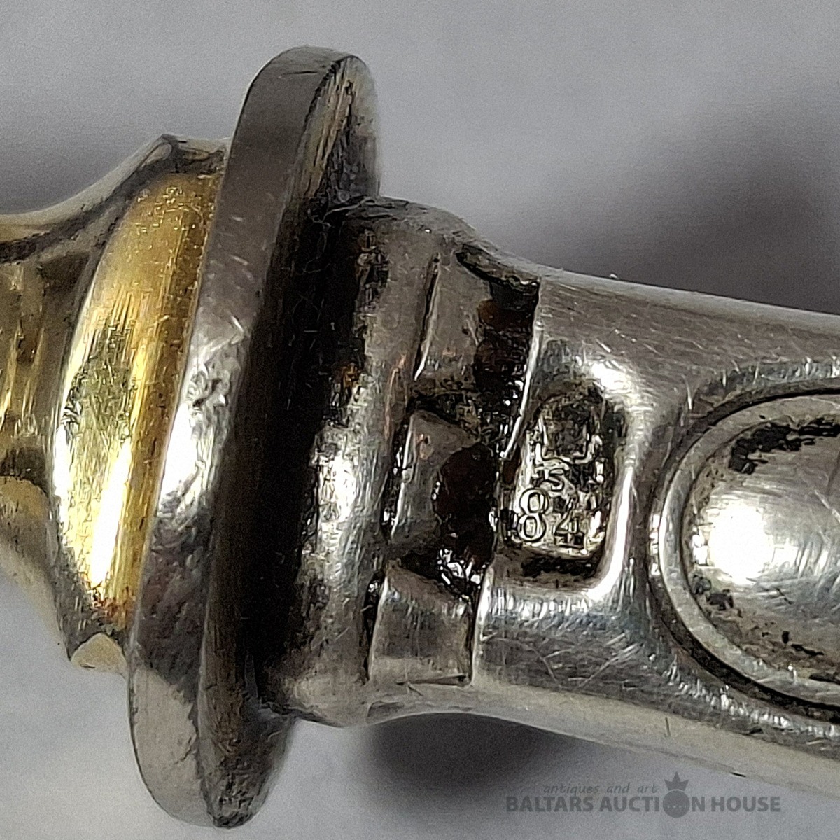 Art Deco stila piespraude ar baltiem akmeņiem. Sudrabs, 925. prove. Svars 5,55 grami. Augstums 7 cm.