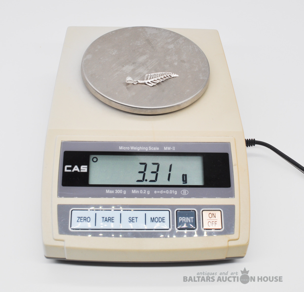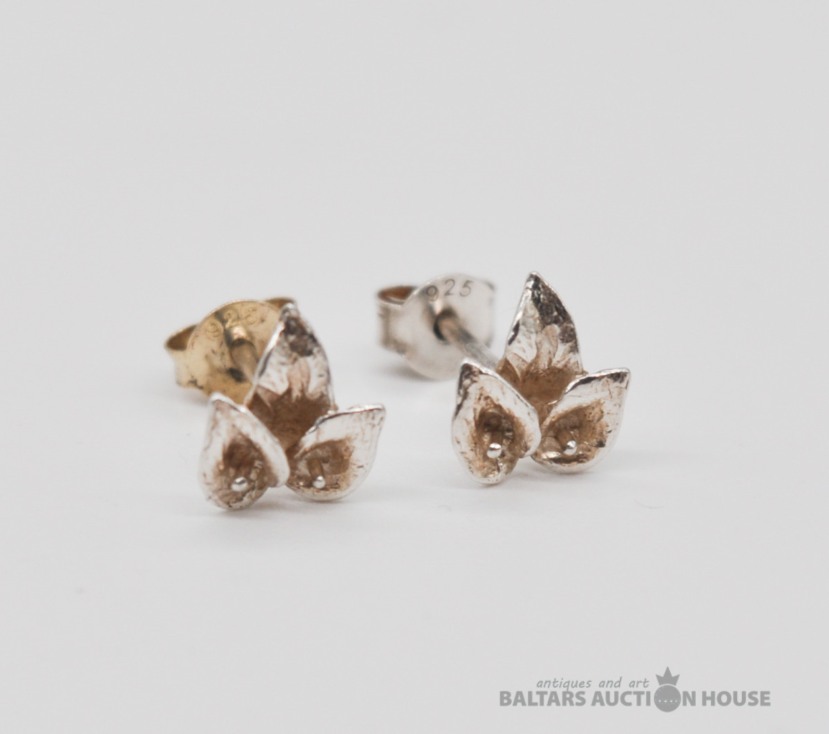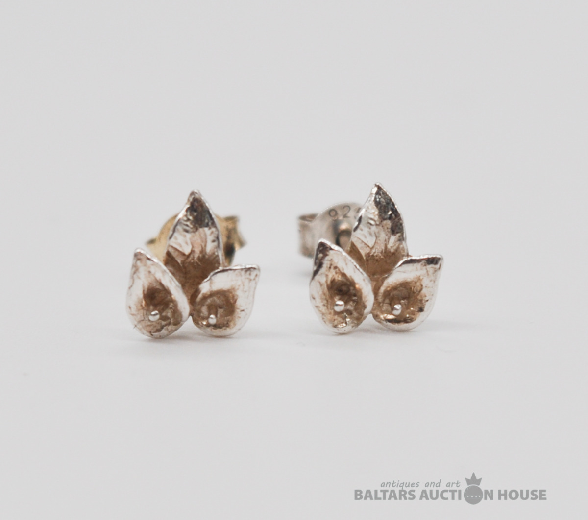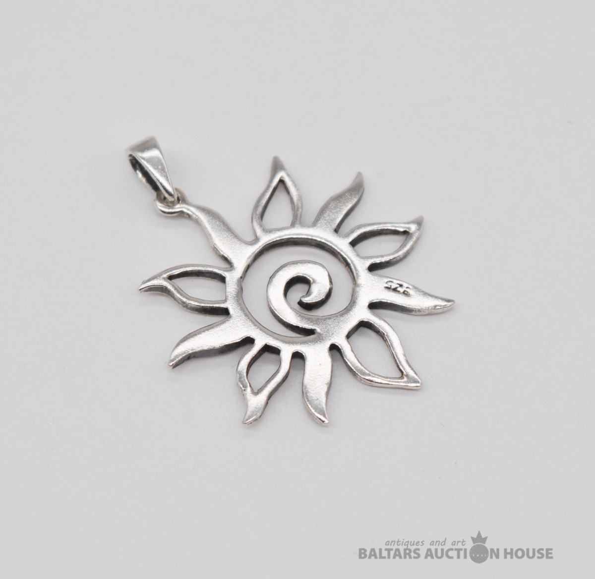 Art Deco stila piespraude ar baltiem akmeņiem. Sudrabs, 925. prove. Svars 5,55 grami. Augstums 7 cm.