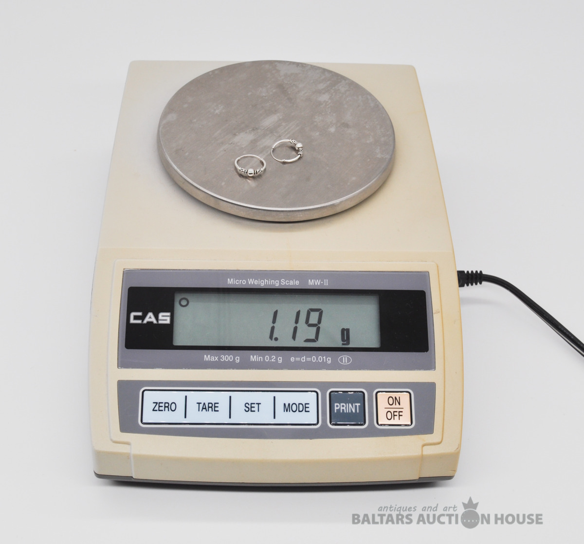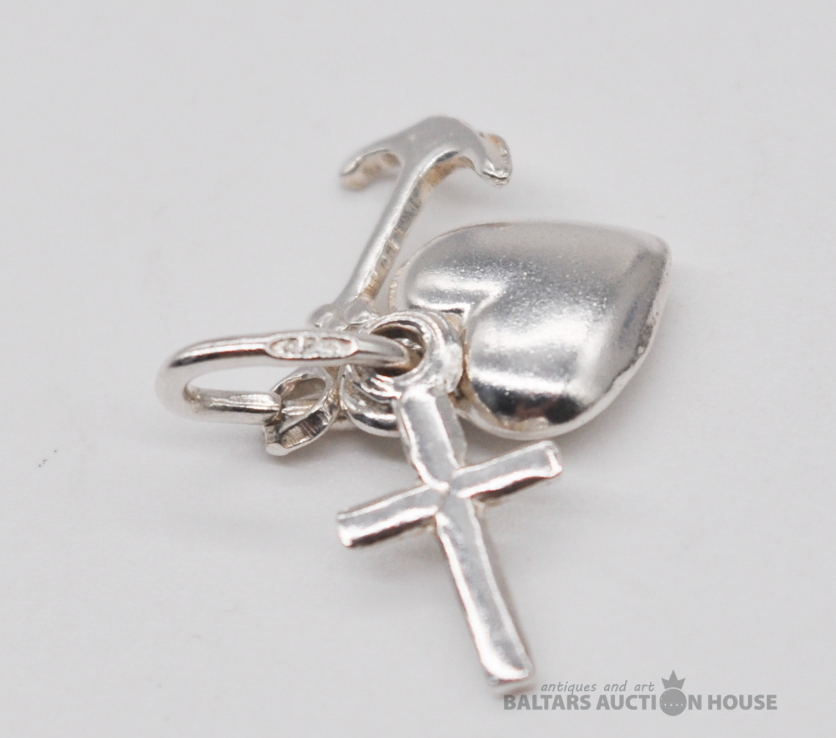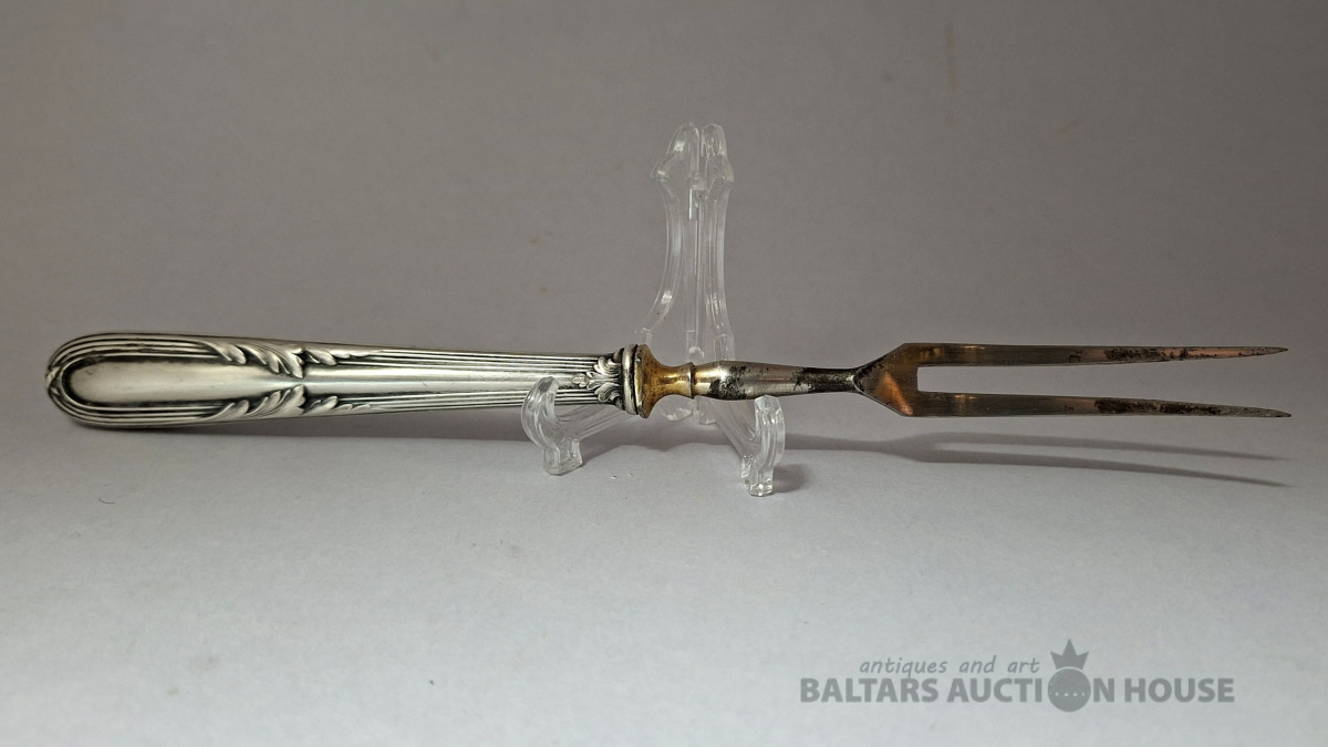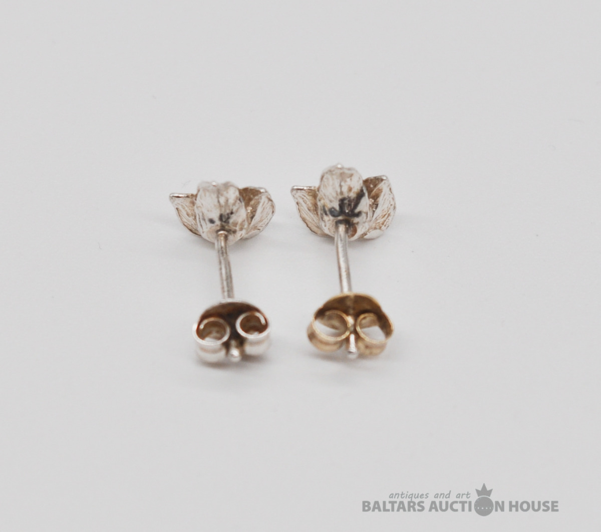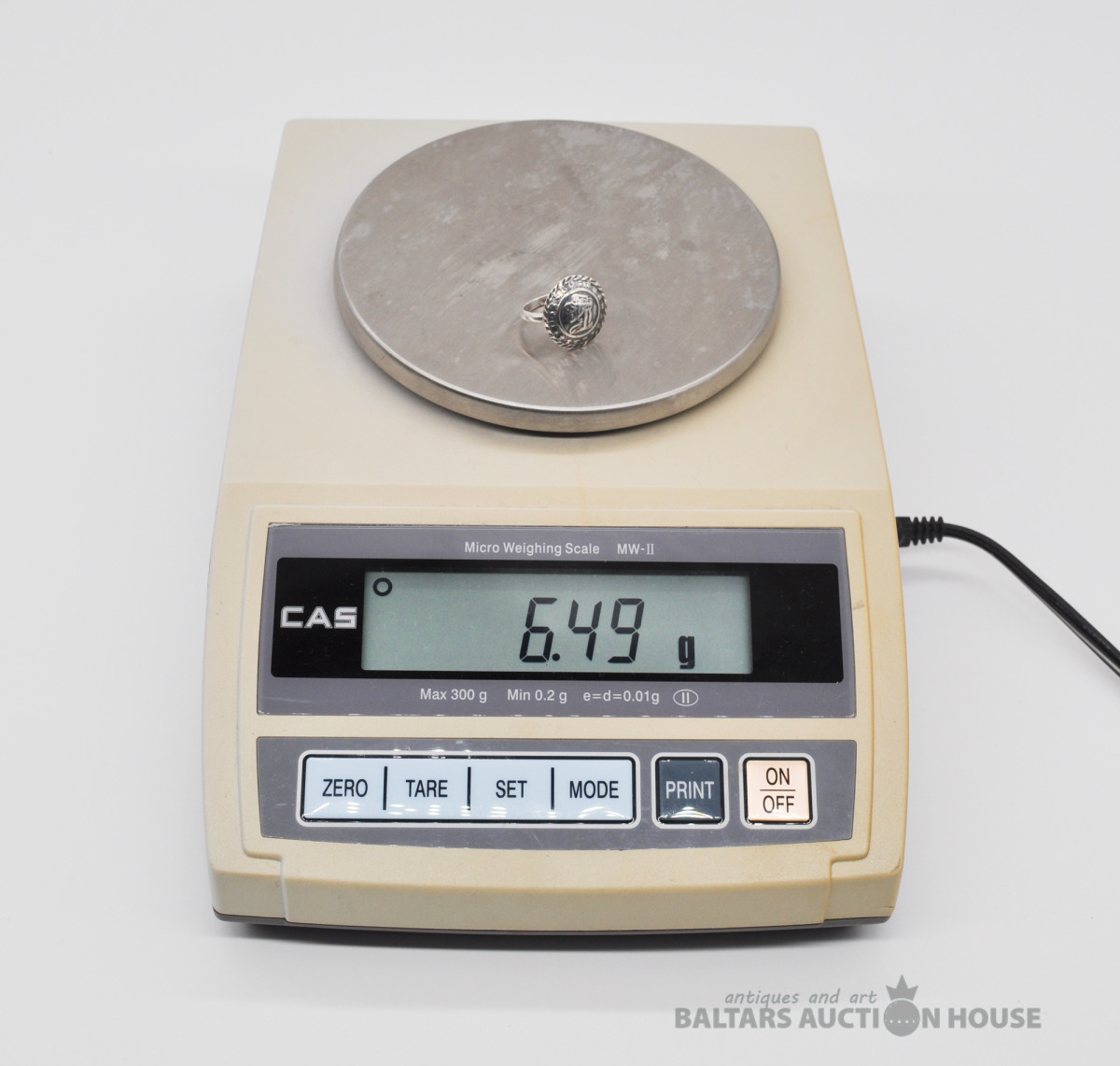 Art Deco stila piespraude ar baltiem akmeņiem. Sudrabs, 925. prove. Svars 5,55 grami. Augstums 7 cm.