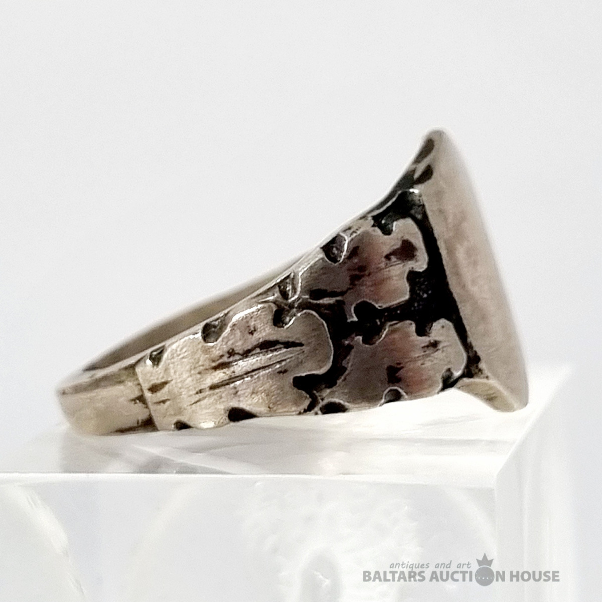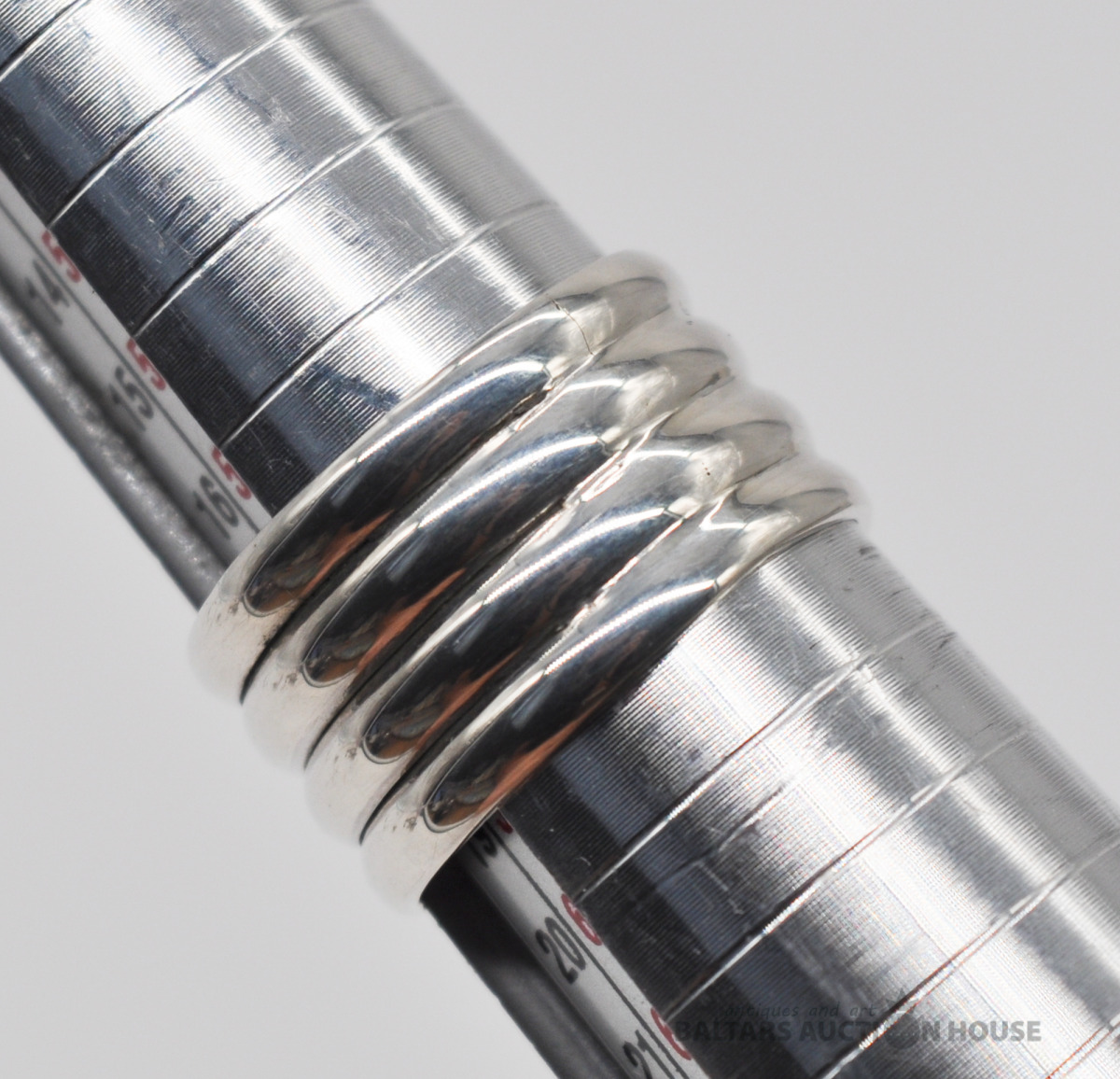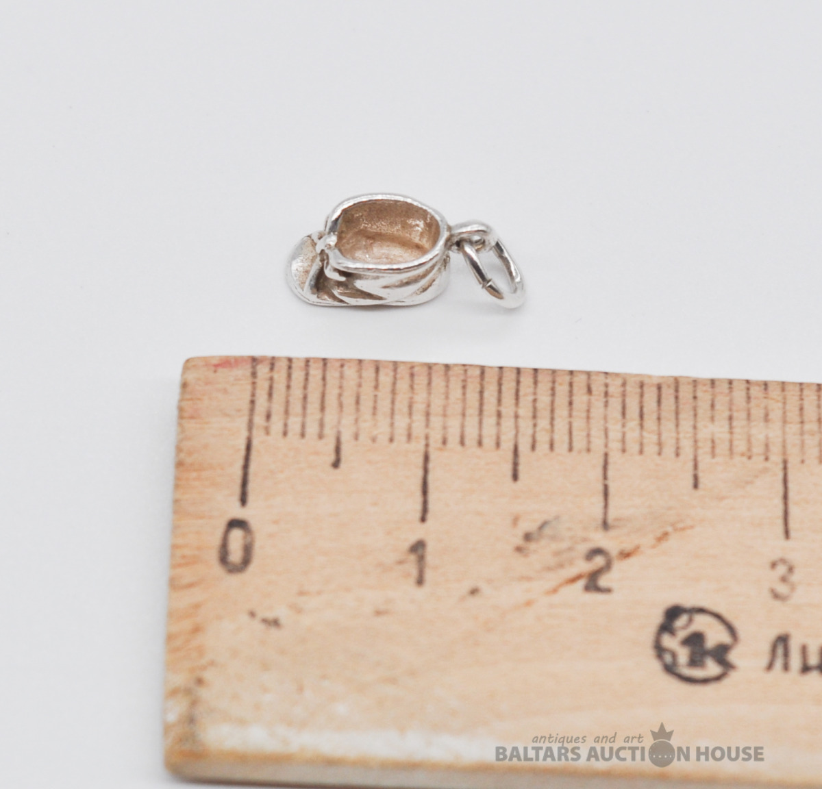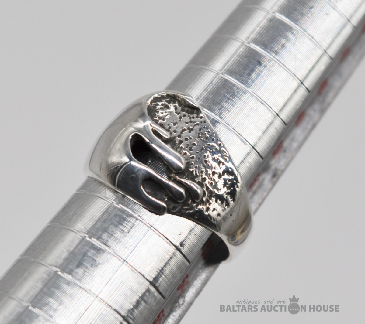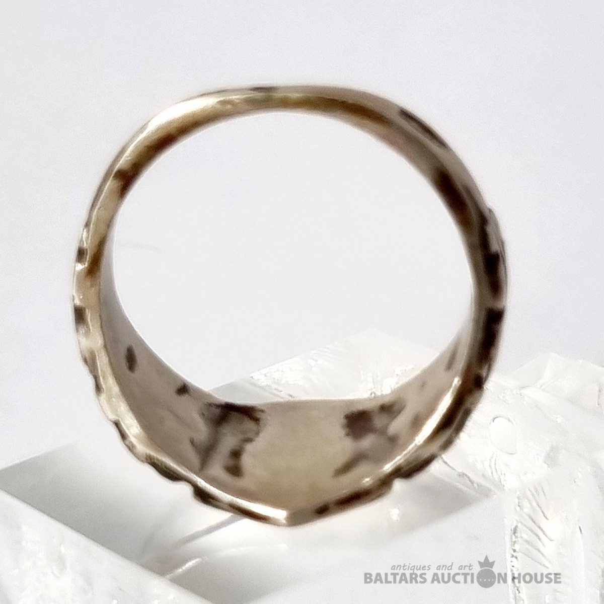 Sudraba aproce. Ārējais garums 21.5 cm. Iekšējais diametrs 62 mm. Platums 12.5 mm. Svars 29.8 grami.
