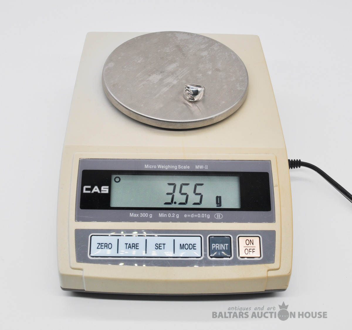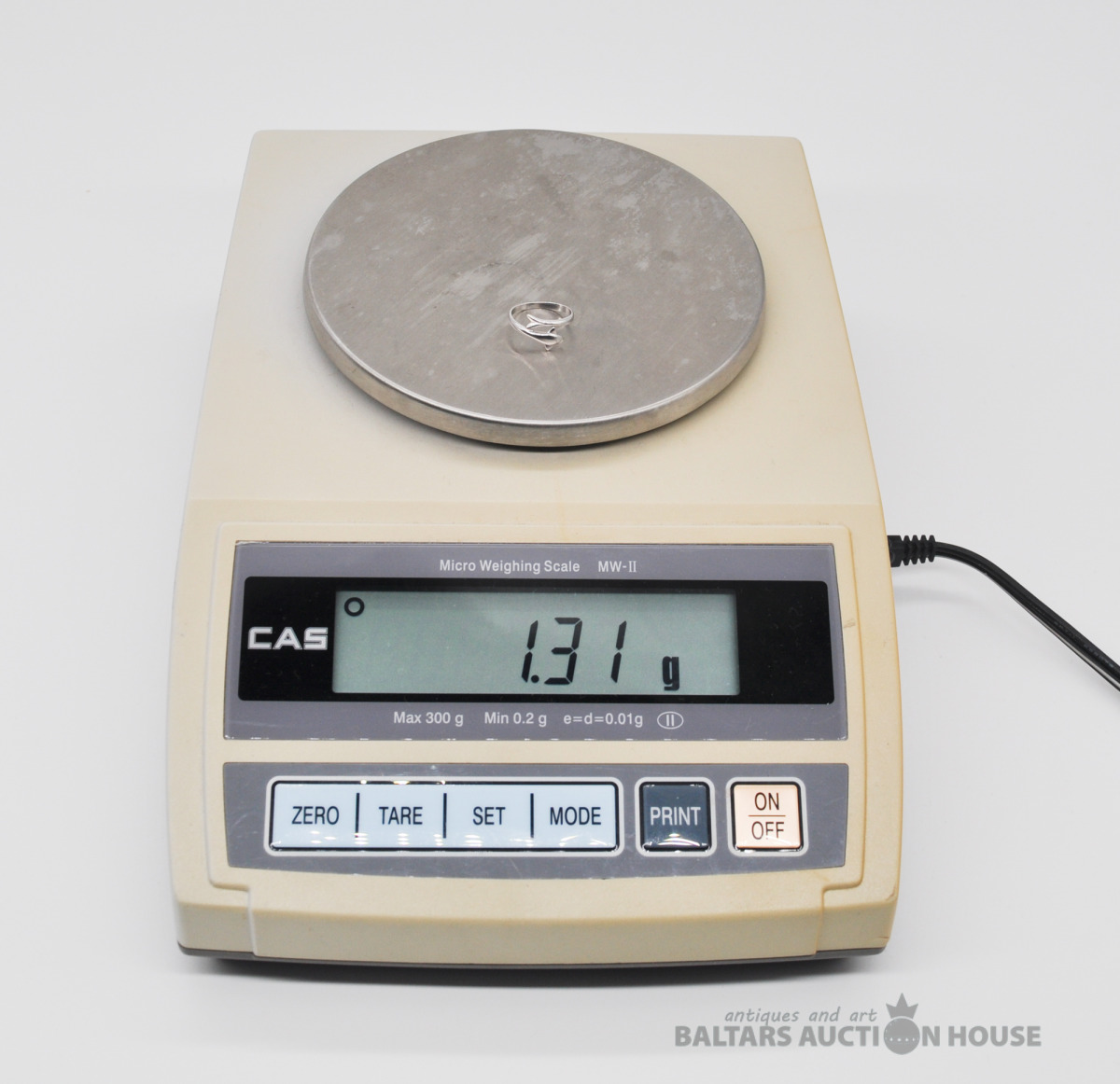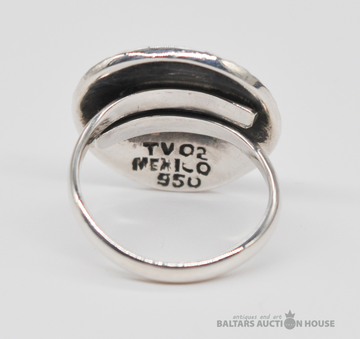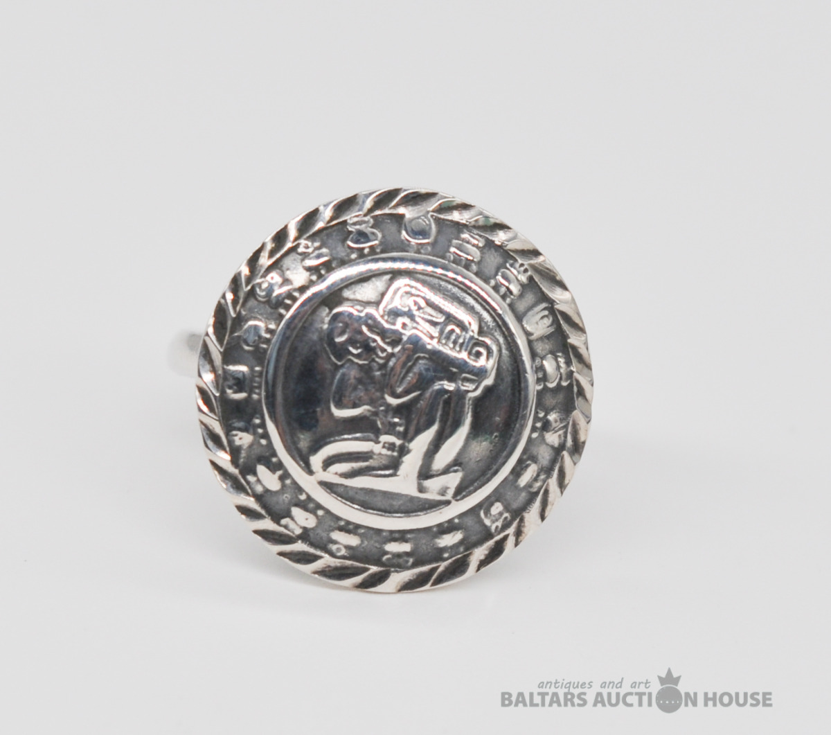 Sudraba aproce. Ārējais garums 21.5 cm. Iekšējais diametrs 62 mm. Platums 12.5 mm. Svars 29.8 grami.