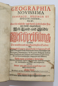 Geographia novissima generalis, specialis et specialissima, das ist: eine sehr nützliche und durch accurate Fragen wohl eingerichtete Welt-Land- und Städtebeschreibung.