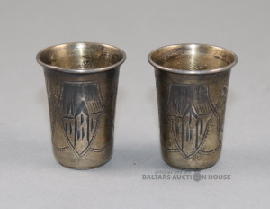 Glāzes 2 gab. Sudrabs 84. Svars 28,63 g. h=4,4 cm. d=3,3 cm