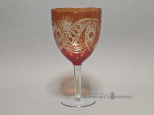 Krāsainā stikla glāze. H 16 cm.Iļģuciema stikla fabrika. Divkrāsains stikls,slīpējums.