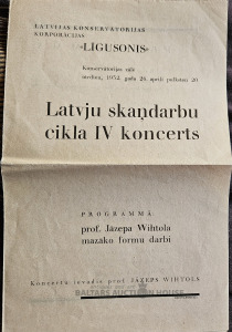 Latvijas konservatorijas korporācijas " Līgusonis " Programma prof.Jāzepa Wihtola mazo formu darbi.