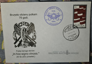 Aploksne. Bruņoto vilcienu pulkam 75 gadi.Pulka karoga devīze "In hoc signo vinces"