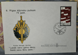 6.Rīgas kājinieku pulkam 75.gadi. Pulka karoga devīze. " Labāk savu galvu devu.Nekā savu tēvu zemi. "