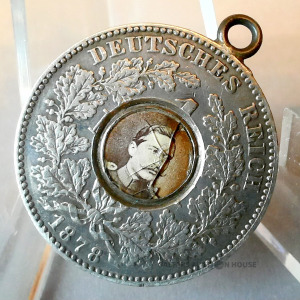 Piemiņas patriotiska žetons, kas izgatavots no 1878. gada 1 markas monētas. Stāvoklis redzams fotoattēlā.