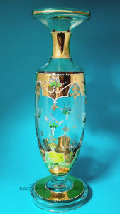 Stikla ziedu vāze (puķu meitene), 35 cm. Zvaigžņu kristāls. Gleznojums, apzeltījums. ČEHIJAS REPUBLIKA, Vintāžas.