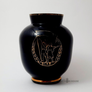 Vāze "ВСХВ". PSRS. Mangāna stikls. Zelta gleznojums.