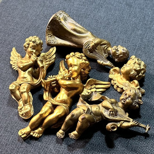 Figūriņu kolekcija, 5 gb., diviem tumšākajiem marķējums Italy, četri no polistona, vienam cits materiāls, lielākajam izmērs 13 cm.