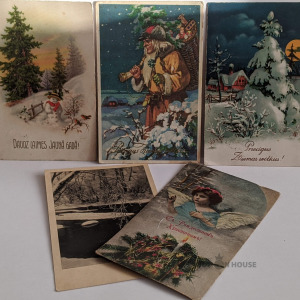 Piecas Senas pastkartes, Ziemassvetki, Jaunais gads, 1916.g., 1929.g., `1931.g.,40-tie gadi