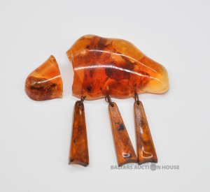 Broša ar dzintara gabaliņiem. Defekts.
