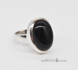 Sudraba gredzens ar oniksu. Svars 7.2 grami.