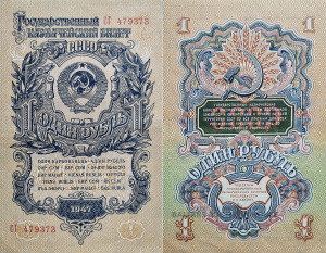 1 rublis 1947. 15 lentītes. Lieliskā stāvoklī.
