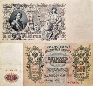 500 RUBĻI 1912. SĒRIJA AЪ VADĪTĀJS ŠIPOVS KAŠIERS METZ. Stāvoklis pēc foto.