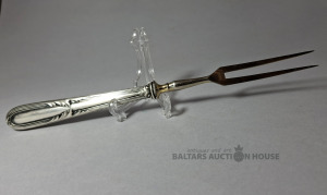 | Nosaukums | Augļu dakšiņa, sudrabs, 84. proves vērtība (800), kopējais svars 43 grami, 20. gadsimta sākums, Krievijas impērija, garums 22 cm, roktura garums 11 cm |