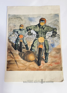 Papīrs,akvarelis, autoru nav iespējams izlasīt. Izmērs :31 cm x 40,5 cm