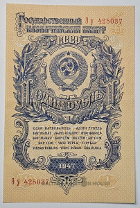 Nosaukums Krievija/ Russia/PSRS 1 Rubļis 1947, 16 lentes, aUNC