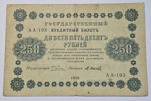 Krievija/ Russia, 250 Rubļis 1918, VF/VF+