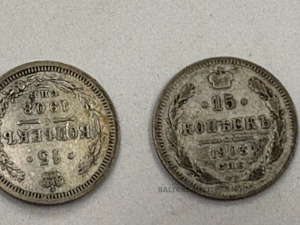 Sudraba 15 kapeiku monētas 1908. un 1903.g.
