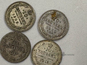 Sudraba 10 kapeiku monētas, 1909.,1910.,1915.,1903. g.