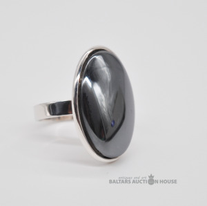 Pielāgojams sudraba gredzens ar hematītu. Svars 10.9 grami.
