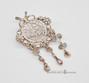 830 sudraba broša. Nomainīta salauzta adata ar provi. Garums 50 mm. Svars 6.9 grami.