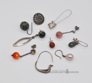 Dažādi nepāra sudraba auskari. Svars 23.4 grami.