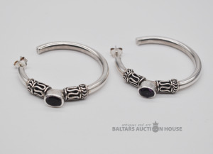 Lieli sudraba auskari ar ametistiem. Diametrs 43 mm. Svars 12.0 grami.