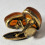 Dzintara aproču pogas, Rīga, Latvija. 875. proves sudrabs. Apzeltīts, PSRS. Stāvoklis redzams fotoattēlā. Svars 8,6 grami.