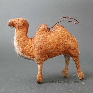 PSRS Ziemassvētku eglītes rotaļlieta: kamielis, papjēmašē. Presēta vate.9x9cm.