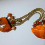 Dubultā dzintara piespraude. Latvija. Kopējais svars: 27,45 grami. Krāsainais metāls.