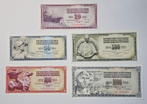 Banknotes, Jugoslavija/Yugoslavia, 20, 50, 100, 500, 1000 Dinari 1978/1981, UNC