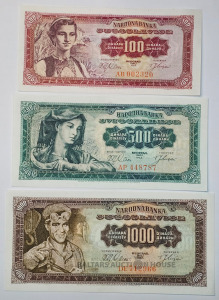 Banknotes, Jugoslavija/Yugoslavia, 100, 500, 1000 Dinari 1963, UNC