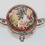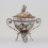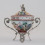 Porcelāna trauks sudraba ietvarā. Roku gleznojums, sudrabs 800. Svars 59,96 g. Vākam iekšpusē neliels nošķēlums. h=13,3 cm