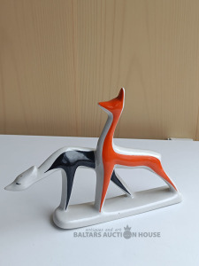 Porcelāna figūra "Stirnas" , 1963. gads. Rīgas porcelāna un fajansa fabrika, modeļa autors Levons Agadžjans. Porcelāns, virsglazūras apgleznojums, 24,5 x 18 x 4,3 cm. Zilais zīmogs, Ir melni punktiņi.