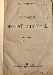 Кн.С.Н. Трубецкой " История древнией философии." 1906.