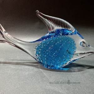 Interjera priekšmets ZIVS, iespaidīgs izskats, nav lietošanas pazīmju, lielums 27 cm ,izgatavota laika posmā 1970.-1973.g., Zviedrija, Konstglass, roku darbs, rets eksemplārs, tika izgatavoti 100 eksemplāri, visi skaistajā zilajā krāsā ar gaisa burbuļiem, dizainu radīja zviedriete Inga Liile Fare, kas ieprecējās stikla dizaineru brāļu Marcolinu dzimtā, kompānijas dibinātāji iepriekš amatu bija apguvuši Itālijā Venēcijā Murano salā un strādajuši vēl divās zviedru stikla dizaina kompānijās, pirms dibināja savu uzņēmumu. Konstglass vairākkārt mainīja nosaukumu un pat atrašanās vietu, aptuveni ap 1991. gadu beidza pastāvēt. Kontrolēto stikla burbuļu tehnoloģiju radīja Orrefors 1930-jos.