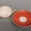 Tējas komplekts , Rīgas porcelāna un fajansa fabrikas tējas komplekts no servīzes "Sakta" Modeļa autore Zina Ulste, 20. gs. 60. gadi. Porcelāns, roku darbs.. krūze - 5,5x10 cm, apakštase 14,5 cm