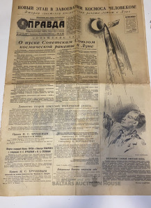 Газета «Правда» 1959 год, Вторая космическая ракета летит к Луне, 6 страниц