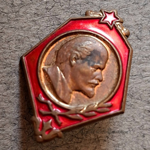 Šī ir padomju laika "V. I. Ļeņina" nozīmīte, ko izdevusi Ļeņingradas kaltuve (LMD).